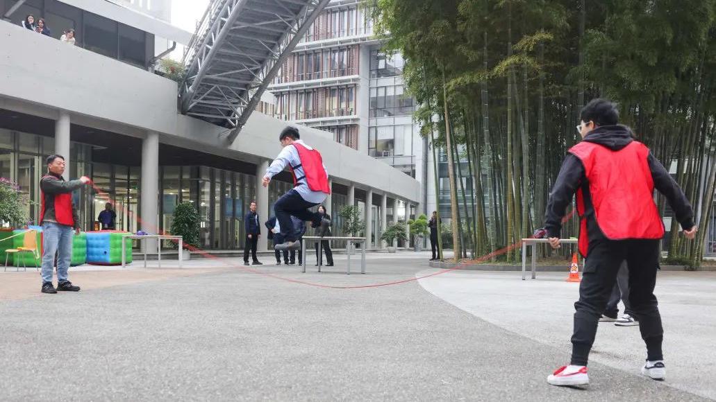 2分鐘內,搖繩與跳繩默契配合,每一次成功的跳躍都是對團隊凝聚力的最佳詮釋?zhuān)奂病澳_”快,接續不斷,失誤重來(lái),斗志不減,青春活力與不屈不撓精神熠熠生輝。